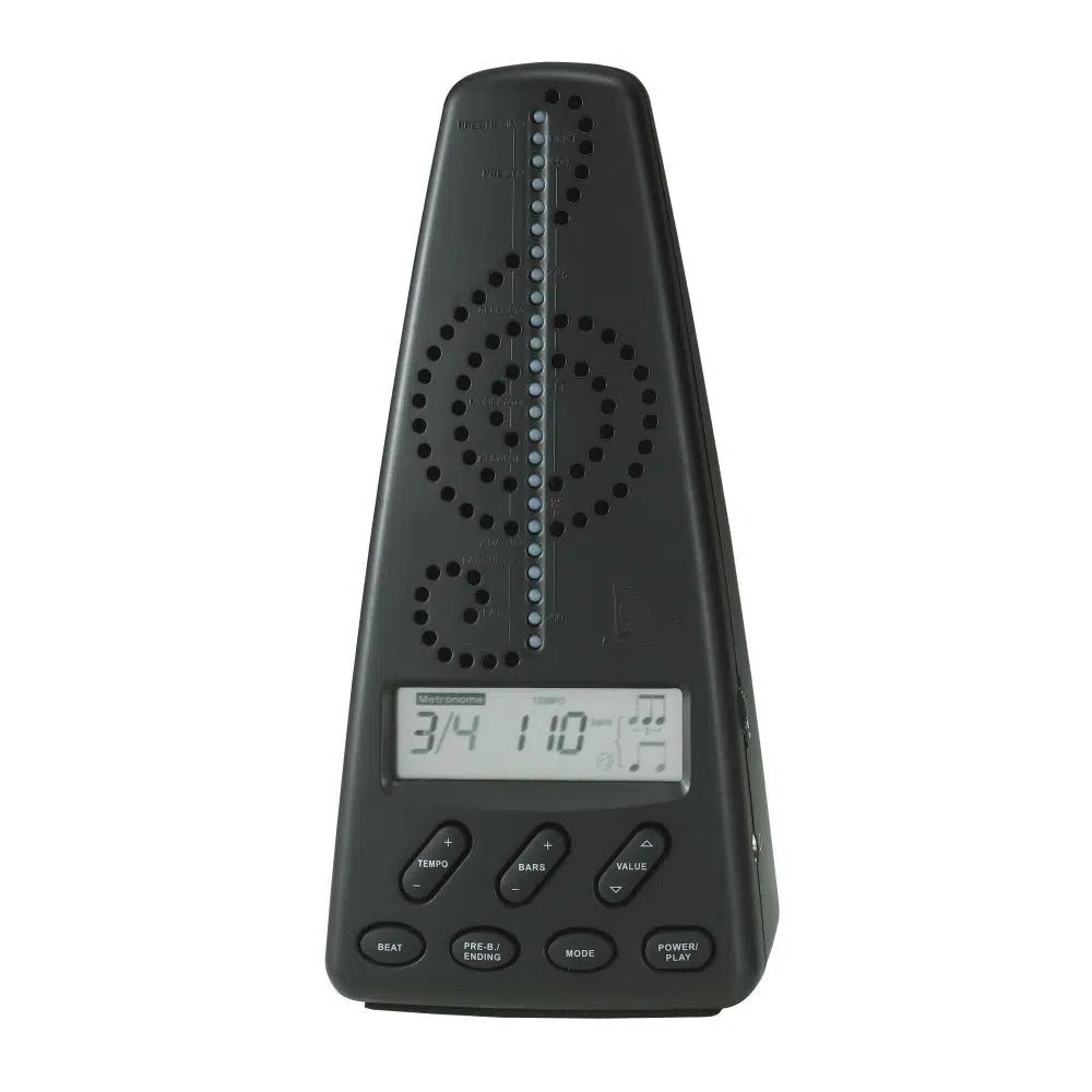 Built to look like a classic metronome, this device is far from being traditional. It combines the functions of metronome and chromatic tuner into one. The metronome function contains volume control, beat simulation with Cherub's revolutionary technology for visual sensing of tempo, voice beat counting, measure counting, beat selection, measure setting, ritardando, and rhythm selection. The chromatic tuner function can tune all 12 notes between A1 to A6.