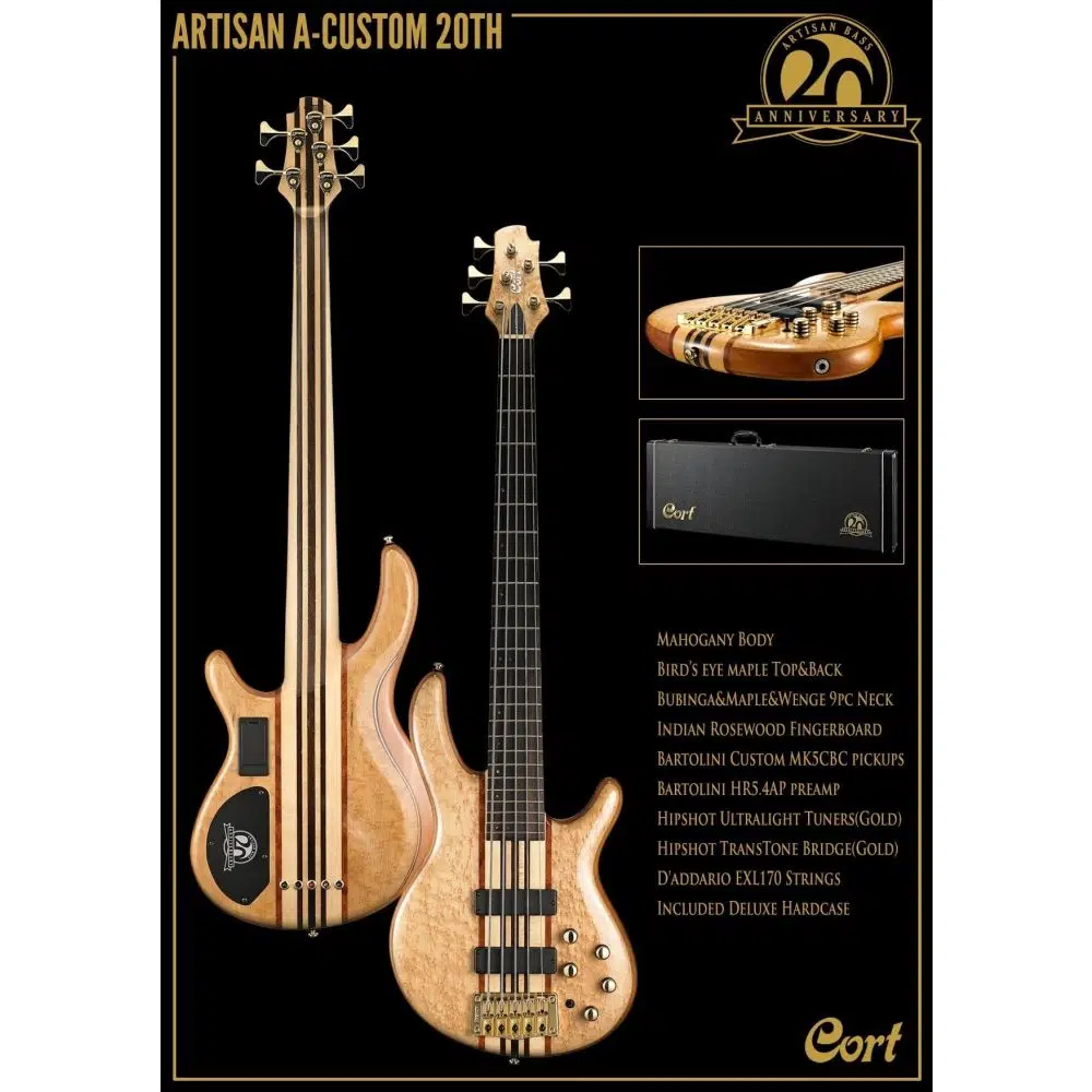 Cort A4 Custom 20Th Nat modeli, Cort’un 20. yıl özel serisi kapsamında üretilmiş, üst seviye işçilik ve modern bas gitar karakterini bir araya getiren profesyonel bir bas gitardır. Naturel (Nat) renk seçeneği, kullanılan ağaçların doğal dokusunu ve estetiğini ön plana çıkarırken sahne ve stüdyo ortamlarında prestijli bir görünüm sunar. Set içeriğinde yer alan gitar çantası, taşıma ve koruma açısından pratiklik sağlar.