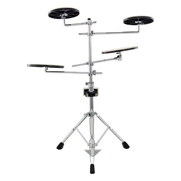 DW DWCPPADTS5 Go Anywhere Alıştırma Seti nerede olursanız olun pratik yapmanızı sağlar. DWCPPADTS5 ile başkalarını rahatsız etmeden davul performansınızı keskinleştirebilirsiniz. Set, tom ve zil için iki 8" ped, trampet ve floor tom için iki 10" ped ve bir kick bateri pedi içerir (pedal dahil değil). Her şey, birlikte verilen yüksekliği ayarlanabilir standına monte edilir.