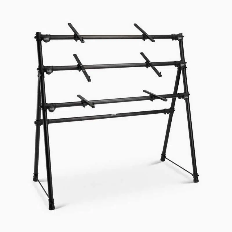 Maksimum 88 tuşlu klavyeleri taşıyabilecek şekilde tasarlanan bu 3'lü klavye standı, güçlü ve ergonomik yapısıyla hem ayakta hem de oturarak çalım kolaylığı sağlar. Dilediğiniz şekilde açıları ayarlayabilirsiniz.