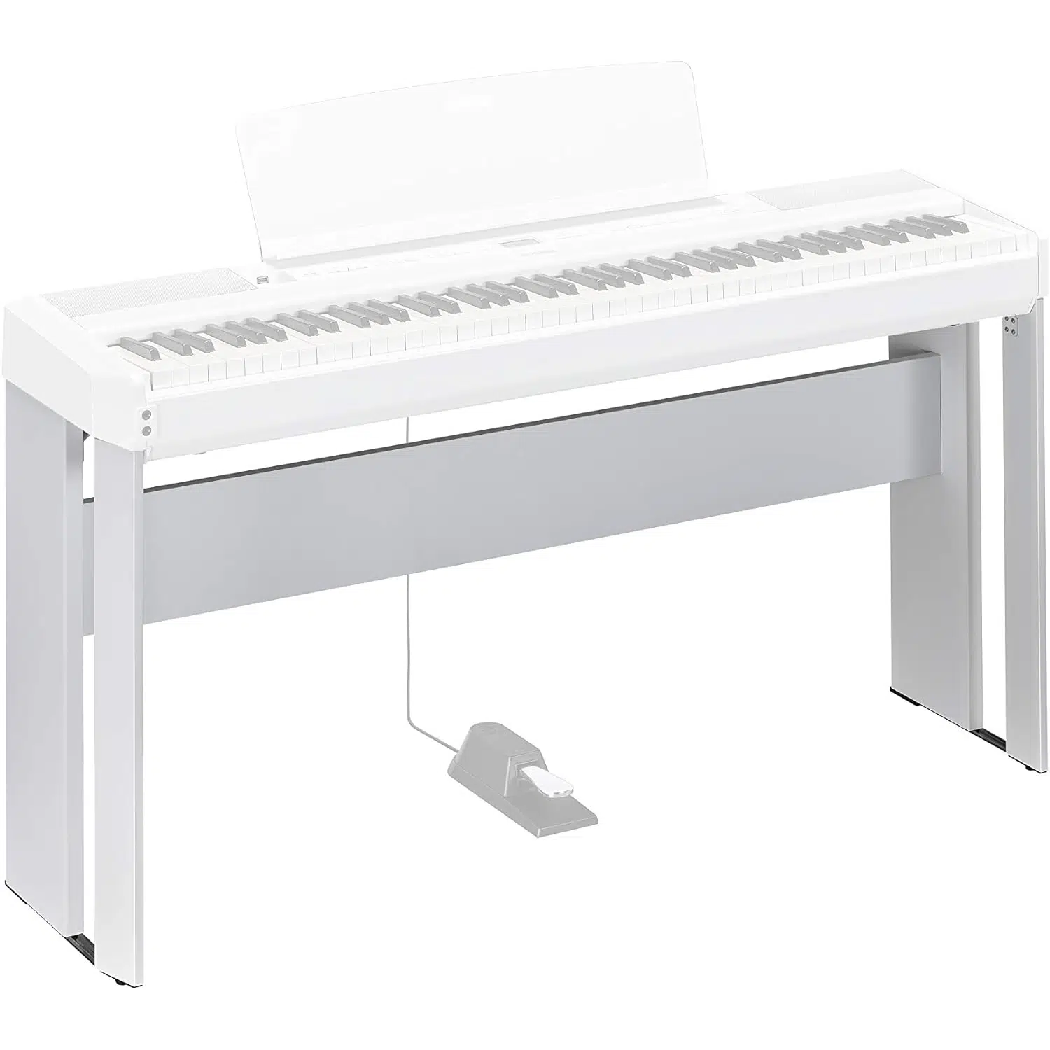 L-515WH, Yamaha’nın “mobilya tarzı” (furniture-style) standı; özellikle P-515WH ve benzeri Yamaha dijital piyanolarla uyumlu olarak üretilmiş. Piyano için estetik, sabit ve sağlam bir zemin sağlar. Görünüş olarak piyanoyla uyumlu beyaz cilalı yüzeyi, ev dekorasyonuna daha “mobilya” hissi katması için tasarlanmıştır.